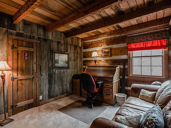 PRE-INSPECTED! Rustic/Log home on almost 2 acres w/ a creek awaits you! 4 BR's, 2.5 BA's! LR w/ gas FP, Eat-in kitchen, Formal DR, Office/Study! Partially finished basement with recreation room/full bath (or) 5th BR option! Auto exterior lighting, 4 car garage! 2 NEW HVAC units, Lifetime Metal Roof (9yrs old).
