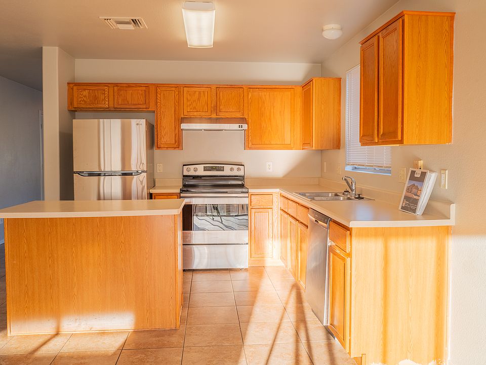 This immaculate 3-bedroom, 2-bathroom home has been lovingly updated and features a spacious 2-car garage. The new shingle roof was installed in 2021 and a new HVAC system in 2022. Step inside to find beautiful tile flooring throughout, creating a modern and cohesive look. The open layout is perfect for both entertaining and everyday living. The included washer, dryer, and refrigerator make moving in a breeze. This spotless home is truly move-in ready and waiting for a new renter! Renter is responsible for utilities. No smoking. Section 8 accepted.