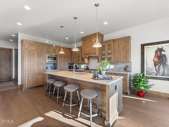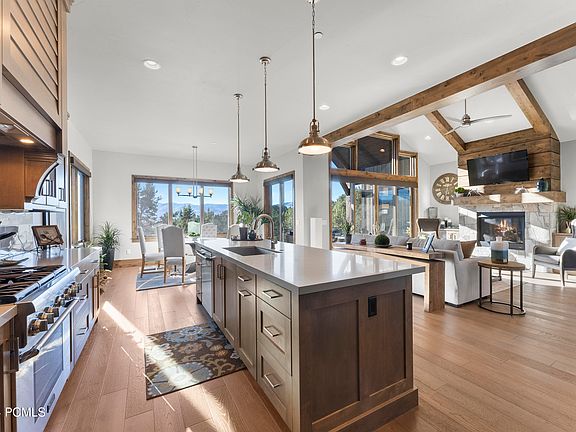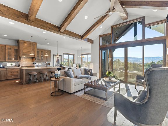 This freshly painted Red Ledges home epitomizes luxury and comfort, thoughtfully designed for relaxation and entertaining. The open floor plan is bathed in natural light from large windows that frame expansive mountain views, creating a serene atmosphere throughout. Featuring two spacious living areas and a second laundry room, this home offers convenience and ample space for both family and guests. Outdoors, enjoy two gas fire pits, a premium kitchen with marine-grade finishes, and a convenient removable fridge - perfect for gatherings or quiet evenings. Indoors, remote-controlled, fireplace offer seamless comfort, while a Moen Flo safety system ensures proactive water monitoring for peace of mind. A custom-built bunk room adds charm and warmth, creating a cozy retreat for family and guests. The high-end kitchen, equipped with premium appliances, abundant counter space, and industrial design touches, is a joy for home chefs and entertainers alike. Nestled in the picturesque Red Ledges community, this home offers a low-maintenance lifestyle with landscaping and winter snow removal managed by the community. Residents also enjoy a convenient shuttle service providing direct access to Deer Valley Resort, ensuring year-round outdoor adventures are just a short ride away. Red Ledges requires a lifestyle membership buy-in, offering access to unmatched amenities for a truly elevated living experience, including Cliff Drysdale tennis courts, miles of scenic hiking trails, and several clubhouses with pools, fitness centers, and fine dining - all set against stunning mountain backdrops.