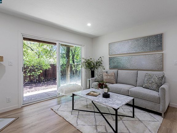 Completely updated and rarely available ground-floor condo with large outdoor patio. White shaker kitchen cabinets with quartz counter tops, new appliances, lights and laminate flooring. Spacious dining area. Beautifully updated bathroom with new vanities, tub, tile and lights. Primary suite has two large mirrored closets with access to bathroom with private vanity. All dual pane windows. Large living room with LED recessed lights, newly tiled fireplace and access to the spacious private back yard. Brand new HVAC system. Large storage closet. Nothing left untouched. Short distance to BART, minutes to freeway access, downtown Walnut Creek, parks, trails and top-rated Walnut Creek schools. Water and trash removal included in HOA. There is a sparkling community pool for the hot summer days. Community laundry facility just steps away. No Rental restrictions.
