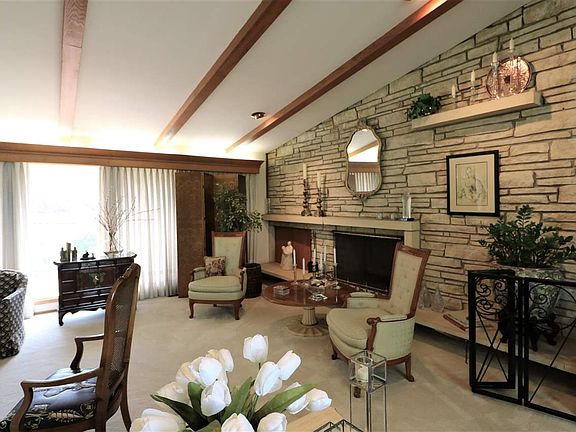 Beautiful mid century quad level home near WSU. Well maintained with spacious rooms throughout. The living room is 33x18 with a beamed, vaulted ceilng and stone fireplace. The kitchen has plenty of cabinets, granite countertops, pantry, lots of windows and a dining area. The master bedroom is 22x13 with a balcony, master bath, dressing room and a large walk in closet with built in cabinets. The second bedroom is 24x13 with plenty of room for a king size bed or 2 and a sitting area. There is a 23x12 family room on the walkout level with a stone fireplace and a wet bar. This level also has the laundry room, walkout to the patio, a bath with shower and a guest bedroom. The basement level has a extra large rec room, storage room and a cedar closet. The front and back yards are landscaped. The back yard is fenced and has a large deck off the kitchen and a large patio off the family room with a water feature that has a waterfall and stream. This is a great house for entertaining.