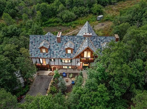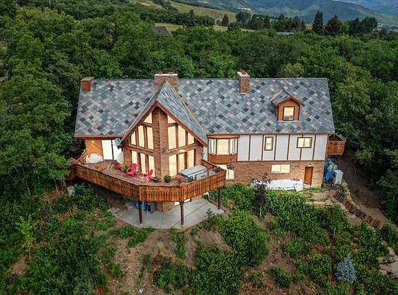 Swiss Chalet Mountain Retreat nestled in Eden's Nordic Valley. A MUST-SEE. There are more fantastic features than can be described here. AND, it's permitted as a Bed and Breakfast! Make it yours or a business adventure or BOTH. Exceptional quality and unique design. If you're looking for a quiet lifestyle in a charming home, this one is for you. Arrival at this woodland nest takes you immediately into slow mode. Perfectly implemented landscaping offers nooks of peace, centers for gatherings, gardening, two natural streams, and a fountain feature in the pond. Specs include 2'x6' construction throughout, exterior plasterboard masonite, 2013 all new rubber and plastic composite roof, two cast iron Heatilator fireplace inserts, five fireplaces total, meticulously refinished hardwood floors, handcrafted woodwork on decks with hand-cut and gold painted spindles, custom-built cabinetry with dovetail finishes, granite counters, high-quality Advanced windows, natural gas, tankless hot water in the main house. The basement has ski space storage. And did I mention STORAGE STORAGE and more STORAGE? Design plans for a detached, six-car garage with a studio available. Floor plan description - The apartment is over the garage with stairs to the main entry, kitchen, living, dining, bath, and laundry. Up to the second level to a master bedroom with balcony (VIEWS) and office. The office does have a door to the main house upstairs loft. The main house has an impressive entry with a few steps up to the main living room with prow windows. On this level is the kitchen, dining, living room, half bath as well as an en suite bedroom and bath. Upstairs is a loft with more views, a balcony, and another en suite bedroom and bath as well access to the apartment office. The basement has a walk-out to the covered patio (with all new concrete) as well as entry to the garage, ski storage, a large laundry room with plenty of storage and space for sewing or crafting, a cozy living room with a fireplace, and an en suite bedroom and bath. The garage is heated! Rarely gets below 40 degrees. Please call with questions.