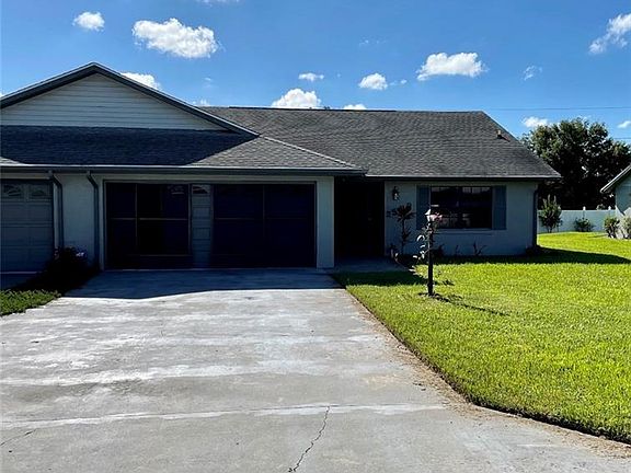 Pending before print. Nice home with recent updates such as granite countertops, white cabinetry, new wood laminate flooring throughout, new upgraded light fixtures, interior just freshly painted, newer AC, and more! LARGE screened and covered back patio overlooking the back yard. Community clubhouse features screened pool area, clubhouse, and shuffleboard courts. Attached 2-car garage. HOA fee is $65 per month which covers lawn care, irrigation and access to community pool, clubhouse, and shuffleboard.