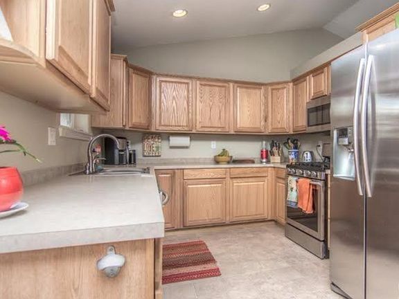 Welcome to this charming 3-bedroom, 2.5-bathroom gem with an abundance of natural light and captivating vaulted ceilings. Nestled in a private enclave above the neighborhood, this home offers stunning panoramic views of the majestic Cascade Mountains and iconic Pilot Butte. Inside, you'll find two spacious living areas, providing ample room for relaxation and entertainment. The modern kitchen boasts sleek stainless steel appliances, adding a touch of elegance to your culinary experience. Cozy up on chilly nights by the inviting propane fireplace, creating a warm and inviting atmosphere. Step outside onto the tranquil deck, where you can bask in the serenity of your surroundings. The expansive lot provides plenty of space for outdoor activities and gardening enthusiasts. For those in need of extra storage, you'll appreciate the generously sized area underneath the home, easily accessible through the thoughtfully finished 2 car garage. This residence combines comfort, style, and breathtaking views, creating a truly exceptional living experience.