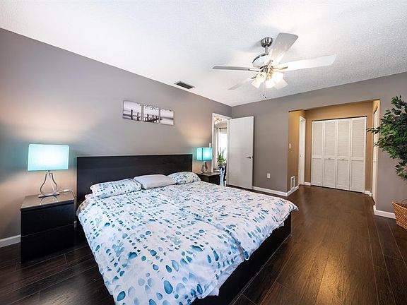 Welcome Home! Single family, pool home with split floor plan. Galley kitchen can be opened to Living area for open floorplan. Salt conversion pool, new cell system replaced 2023. Updates include-Impact front & garage door & both glass sliders. Main bath has been totally updated, electric panel new 2023, and the dishwasher is 2 years new. Laminate floors in bedrooms and living area new 2017. Washer-dryer in garage 2 years new. A-C compressor new 2023 and condenser 2015. The roof is leak free and has 5-10 years life per recent wind mitigation. Roof new 2002. Water heater approximately 14 years old. Microwave does not convey to Buyer. Home is light & bright with sky lights in dining area. Room for 4 plus cars outside of your two car garage. Home can not be shown until August 5, 2023.