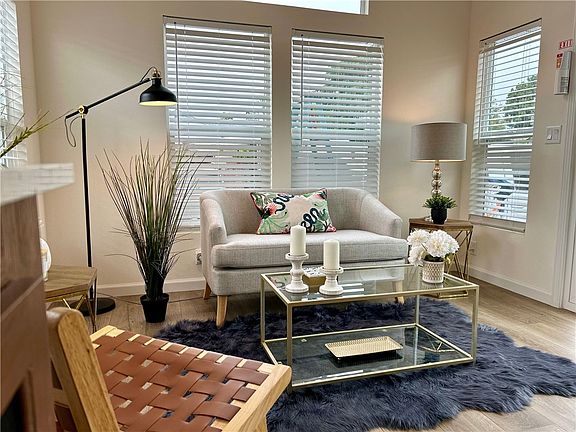Beautiful new home, nestled in the all-age, land-leased community of Walnut Grove Mobile Home Park, boasts approximately 399 square feet of comfortable living space. Its open floor plan, accentuated by high ceilings, creates a spacious ambiance. Ascend the stairs to discover a storage loft with a coffered ceiling, adding an additional 87 square feet of usable area. The kitchen is a highlight, showcasing new cabinets adorned with brushed nickel hardware, modern Whirlpool stainless steel appliances, and elegant white quartz countertops. For added convenience, the home is plumbed for a stackable washer and dryer, while luxury vinyl flooring enhances both style and practicality. This remarkable property is truly a must-see, offering a blend of contemporary design, functionality, and charm. First month space rent is FREE.
