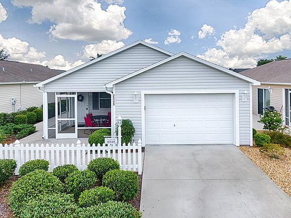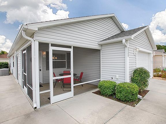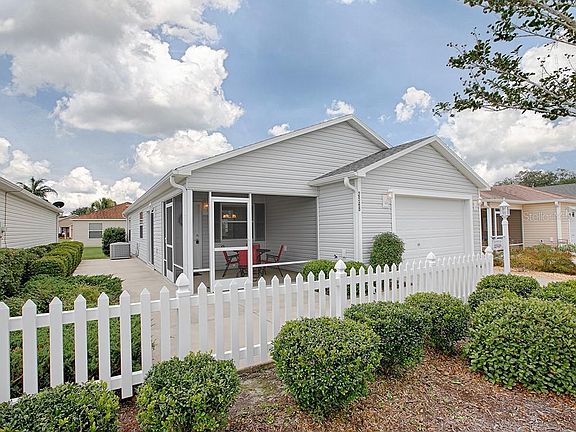 Nestled in the very desirable Village of Buttonwood, this inviting and beautifully maintained Colony Patio Villa is conveniently located between the Lake Sumter Landing and Brownwood Town Squares. Whether you are a snowbird looking for your first Villages home, or a Villager who wants to be in the heart of Florida's Friendliest Hometown, this villa might be perfect for you! There's nothing left to do in this super clean TURNKEY villa, so hop in the Yamaha gas golf cart that's included and head for one of several golf courses, swimming pools, rec centers or country clubs nearby. The open floor plan and the vaulted ceilings with knock down finish lend to a spacious feel. Tasteful furnishings throughout provide a comfy welcoming space for relaxing or entertaining. The kitchen features an electric smooth top range, as well as a great snack bar where guests can gather. Plenty of cabinets and a pantry closet provide lots of storage. A big plus is the inside laundry conveniently located just off the kitchen. The master bedroom features beautiful upscale furnishings including a king size bed with attractive bedding & window treatments. Visitors will enjoy the luxury of a roomy nicely appointed guest bedroom and a convenient guest bath with a tub/shower combination just off the hall. A screened front lanai with river rock flooring is the perfect place to enjoy morning coffee or visit with friends, and there's plenty of space on the side patio to grill or just enjoy the fresh air. Pride of ownership is apparent everywhere in this home! Call for your private showing today!
