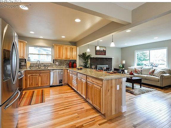 Phenomenal ranch in Browns Farm; backs to trail with foothills views! Completely updated; slab granite, hickory cabinets, custom backsplash. All baths updated with granite and custom tile. Stylish new exterior paint, front door & new vinyl windows outside. Shed for gardening projects/storage. Unobstructed foothills views from dining room for CO living at its best. Abutting outdoor trails, open space, & Horsetooth reservoir near. Hot water heat and expansive basement with second living area!