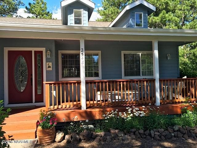 Immaculate and move-in ready! Located in one of Flagstaff's most desirable neighborhoods. Just minutes to the theater, NAU, downtown and the I-17 and I-40 interchanges. This charming home backs up to 300+ ft. of tranquil, heavily treed, HOA greenbelt for absolute privacy. Recently updated with new paint, carpet, flooring, fixtures, lighting, counter tops, hot water heater and more. The home's vaulted ceilings project space and roominess throughout. The 28 ft. covered front porch overlooks a newly landscaped front yard. This lightly used, 2nd home has received lots of TLC! Don't miss a chance to live in this great neighborhood!