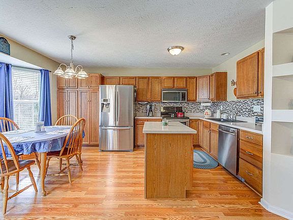 - Kitchen Features: Wood Cabinets, Island, Wood Floors, Pantry, Eat-In, Walkout