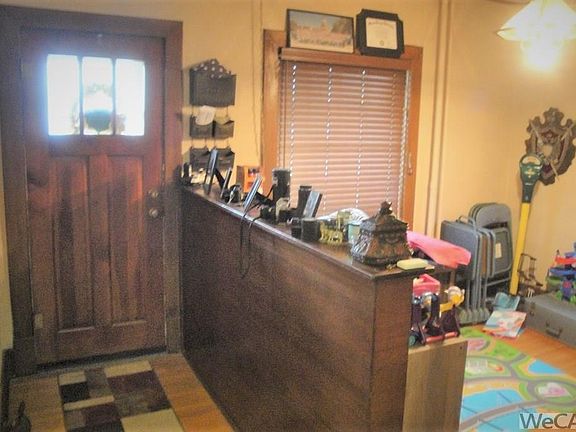 Great space in this 3 bedroom, 1 bath home. Natural hardwood floors enhance this living space. Kitchen has Jen Air cook top unit with interchangeable unit. Fireplace with beautiful mantle in dining room. 3 bedrooms and bath upstairs. 2 wall mounted t.v.'s stay. Covered back patio for a place to enjoy outdoors. Great backyard with nice trees. Detached 2 car garage with overhead storage space. Space for outdoor fun or gardening. Come see all this!