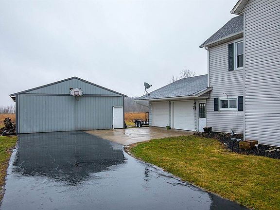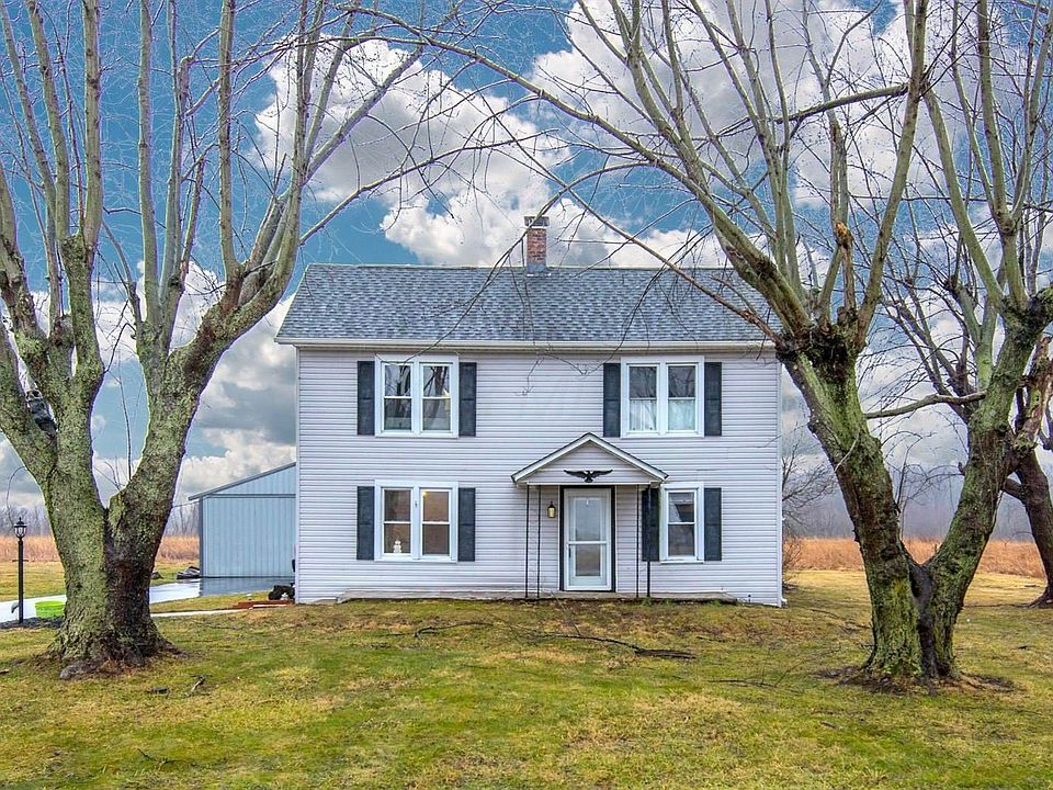 Fall in love with the character of this 2 story farmhouse situated on 1.379 acres. Oversized 2 car attached garage with a woodburning stove + an additional 30 X 50 pole barn with electric. Close to Deer Creek. Bring your boat because this home is approx 3 miles from the marina. Surrounded by farm land. Beautiful hardwood floors, updated windows, new stainless steel appliances, updated baths, new gutters in 2017 - top story is leafguard. This one is a charmer!