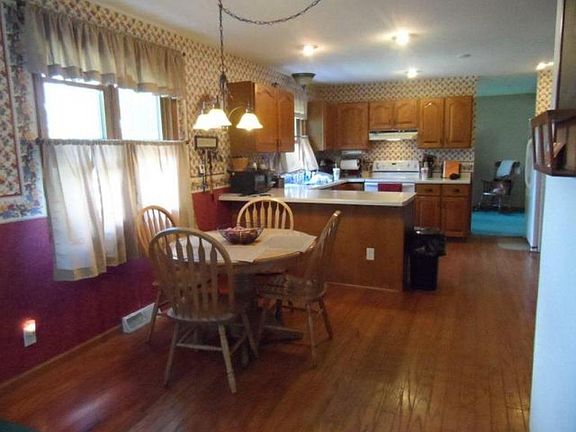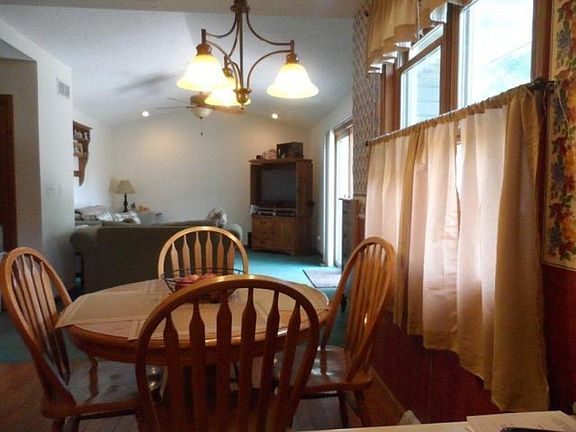 Open floor plan from kitchen, dining area to family room, with slider door to 15x18 deck. Kitchen has oak cabinets with breakfast area, closet pantry & wood floors. Main floor laundry. Partial open staircase. Main floor family room with vaulted ceiling. 23x24 family in basement. Master bedroom with walk-in closet & private bath. Covered front porch. Whole house fan. Furnace 10. Fenced yard. Roof 09. Drilled well 03.