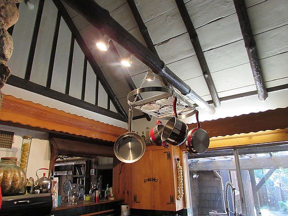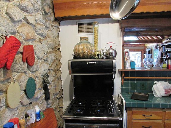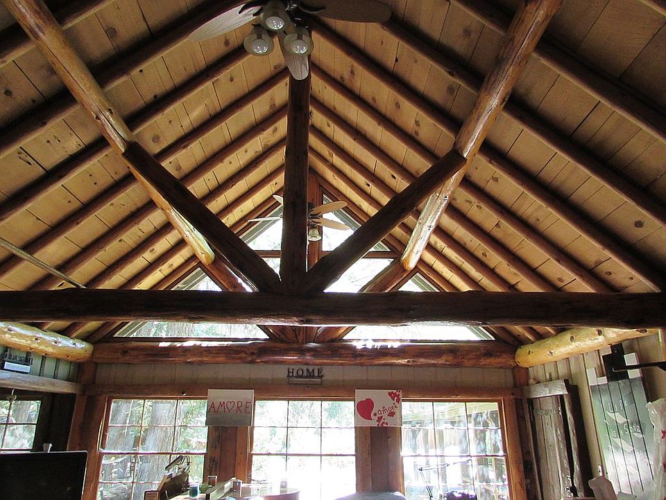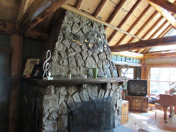 Majestic Lodge on Strawberry Creek in Fern Valley... The Beverly Hills of Idyllwild! A grand 15 foot cathedral ceiling with huge log beams greets you upon entering the great room. A massive stone fireplace is the centerpiece. The dining room looks out on Strawberry Creek and has it's own stone fireplace with pioneer style cooking hook. The kitchen is fitted with modern vintage appliances and has a keen butler's pantry with cold storage. The bedroom wing has two good sized bedrooms, each with a bathroom across the hall. The master suite has a vaulted ceiling, double sink, and sunken tub and commode in separate space. Above the bedroom is a charming "upper room" for the kids, or extra storage. Arguably the flattest property in Fern Valley, the yard has endless opportunities for outdoor activity. A rustic stone stairway leads down to the creek. But wait a minute... there's more! Just above the creek to the rear of the main lodge is a one-bedroom 1950s vintage apartment with a large deck. This hideaway has amazing seclusion, like no-one knows you are there! Subletting this unit is permitted, and at least $1000 per month in rent is attainable. In "mile high" Idyllwild, this mountain retreat is a perfect sanctuary for anyone. No stop lights, no chain retail stores, Idyllwild is a step into the tranquil past. Yet, within a two-hour drive, one can be in LA or San Diego... just 45 minutes to Palm Springs! This property sits just above Strawberry Creek, often stocked with trout. With over an acre of forested land, and completely fenced, this is the perfect hideaway. The mountain old world charm of this lodge is palpable. Owner pays for water. When snow falls, plowing if driveway will be provided. Tree maintenance provided as needed.