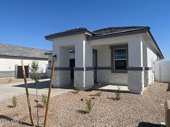 This Open concept GORGEOUS Single Story New Construction home has it all at 1612 square feet, 3 bedrooms, 2 bathrooms, and a full size 2 car garage! This home offers a modern, neutral color palette, with 36'' White shaker cabinetry, a large kitchen island, and 9' ceilings throughout. It also includes a soft water loop, and garage door opener. Washer, Dryer, Refrigerator AND Backyard package included!! This home features dual pane low-E windows, and our Home is Connected smart home system. The exterior features front yard desert landscaping, a covered patio and private backyard. Conveniently located off the I-10, this community is near Costco and more! **Pictures are not of actual home and may vary**
