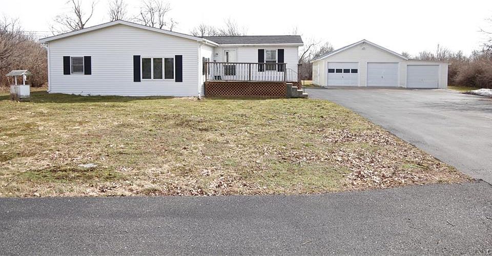 LOCATION! This move in ready home sits on over 2 acres. Minutes from Watertown, Fort Drum and I-81 for an easy commute! New carpet in all 3 bedrooms, a large front living and dining room, and large back porch. A 3 car detached garage AND an additional 1 car garage. TONS of storage space and possibilities. Must see!