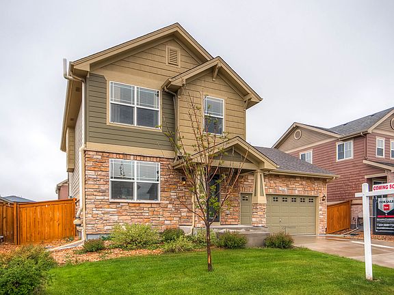 ABSOLUTELY STUNNING! Built in 2012, this gorgeous home is located on a quiet street and is sure to please the discriminant buyer! Guests will be amazed with immaculate landscaping, 10' main floor ceilings, custom paint and glistening ebony hardwood flooring! Your hub when entertaining will be the gorgeous country island kitchen boasting quartz counters, mosaic tile back splash, under-counter granite composite sink and ebony cabinets! At days end, you can relax in your bright and expansive master suite with its huge walk-in closet and dual sink en-suite bath! The open basement awaits your designs and dreams and includes a rough-in for build out! When your entertaining moves outdoors, the large privacy fenced backyard and full-length patio will be the perfect setting for weekend BBQ's and evening stargazing! You can walk to Traditions Community Center, Pool and Park and commuting will be a snap with easy access to E470 & I-70! Nearby schools and shopping! Put this one on TOP OF THE LIST!