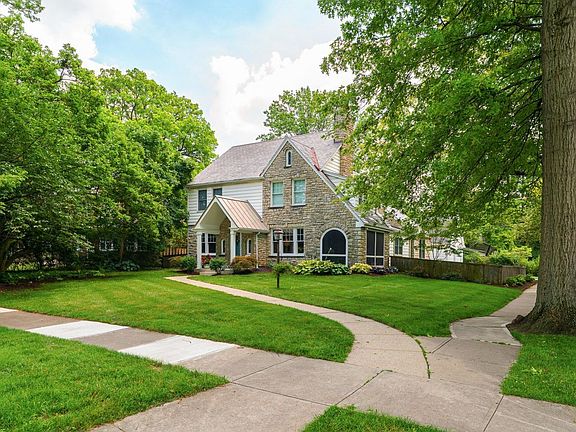 Timeless elegance meets classic Tudor architecture in this stately home. Massive updates in 2018 added convenience while maintaining original character and details. First floor primary suite built in 2018 with vaulted bedroom, large bathroom with oversized glass shower double vanity, plus walk-in closet. Complete renovation of kitchen with center island, stainless steel appliances, new dining area with bar and beverage fridge. Also added 1st floor laundry. The spacious living and dining rooms offer a warm, inviting layout ideal for both everyday living and entertaining. 2nd level offers 4 spacious bedrooms and 2 full bathrooms. 3rd level has a cozy carpeted recreation room plus 6th bedroom and one full bathroom. Outside enjoy a large, fenced backyard with new patio.