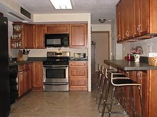 MUST SEE! 5 Bedroom 3.5 bath home on Cul-De-Sac! This 2 story Colonial has 4 BR and 2.5 full bath on main/upper levels. Brick Walls in entry and back hallway add drama. Updated kitchen with Maple Cabs and Stainless Steel Appliances. Breakfast Bar in kitchen. Oak floors in formal LR, DR, AND thru/out upstairs bedrooms and hallway. Den or Home Office with built-ins bookshelves on main level. First Floor Laundry/Mud Room. 5th BR/Mother-in-law/Guest suite with full bath on lower level. Rec Room/Family Room AND fully functional 2nd KITCHEN also on lower level. Enjoy large fenced-in backyard (with a tree house!) from the covered back porch. 2 car detached garage has opener. New AC in 2015. Newer Windows. Whole House Fan. SO MANY FEATURES! Quiet. Convenient. Won't Last!*SEE A2A
