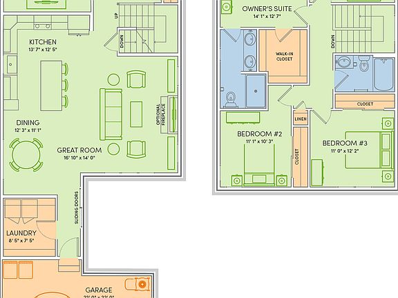 Ready to whip up a meal that competes with Martha Stewart? Then you'll love this kitchen. Or hunker down with a bowl of buttery popcorn and catch an old Jimmy Stewart movie in your PJs? Then this spacious great room will take you away to better days. The Stewart is ideal for channeling your inner Martha, Jimmy, Jon, or even Rod?whether it's a quiet night at home or a fun cookout with friends.All prices, promotions and specifications are subject to change at any time without notice based on the discretion of Veridian Homes. Amenities: Award-winning, high-performance home, Carriage lane style for minimal yardwork, Custom Auburn Ridge® cabinetry, Energy expert certified, Flex room for formal dining room, office, music room, play room, etc., Full basement, Large kitchen island, Large windows in both flex room and owner's suite for plenty of light, Open, first floor plan, Smart Home+ technology, Walk-in closet and bathroom with double bowl vanity off of owner's suite