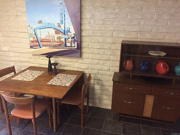 In the heart of town but right on the desert, Villas Borrego was designed by noted mid -century modern architect, Richard Zerbe. Leave your car in your private 2-car attached carport and walk everywhere-to restaurants, Art Institute, shopping and trails! Spacious one-bedroom, all on one level, with private, walled patio off bedroom. Steps to lawn and pool. Two pools, one heated. Masonry construction stays cooler in summer! This unit has been meticulously restored to vintage perfection. Original Geneva metal kitchen with updated appliances, including dishwasher, w/d, slate-look floor. Plenty of storage. Efficient heat and A/C with new thermostat. HOA fee includes water and trash, exterior building maintenance and partial insurance. Short term rentals allowed. 2021-01-04