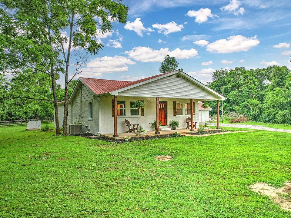 The renovation of this 3BR/2BA country home will amaze you! Have it all on this secluded 48 acre, private estate while having all the modern design you can ask for! From the whitewash brick, beautiful flooring, gorgeous wooden beams, modern kitchen and master en-suite to die for, no detail has been over looked! Private with convenient location near I65 makes this property perfect if you commute or if you just want to hide away in the countryside. Amenities continue outside with the detached garage, barn, multiple outbuildings.