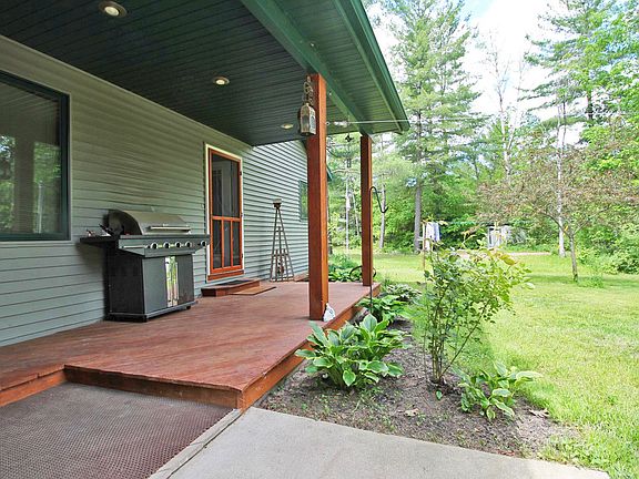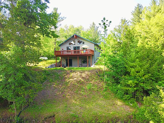 Your troubles just melt away when you walk through the door! This modern ranch home built in 2006 and is nestled on a deep wooded lot that overlooks the beautiful Tobacco river. Custom wood floors & kitchen cabinets, open floor plan with floor to ceiling windows, 4 bedrooms, 2 baths and the potential for even more living space in the basement. Huge private deck off the back of the home gives you stunning views of the river, wildlife and nature right in your own back yard.