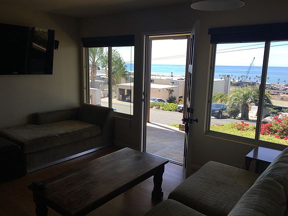 Amazing ocean and sunset views in Cardiff. Very private street with no through traffic. Freshly painted 1 bed 1 bath with attached storage garage. Gated yard with grassy patch. New refrigerator. Whole house has filtered water. Washer dryer in garage. One unit above. One year lease. Unfurnished Pets considered. No dogs that bark. I'm getting permits in about a year to remodel this unit. Utilities $100 per month not including cable/Internet. Parking on street.