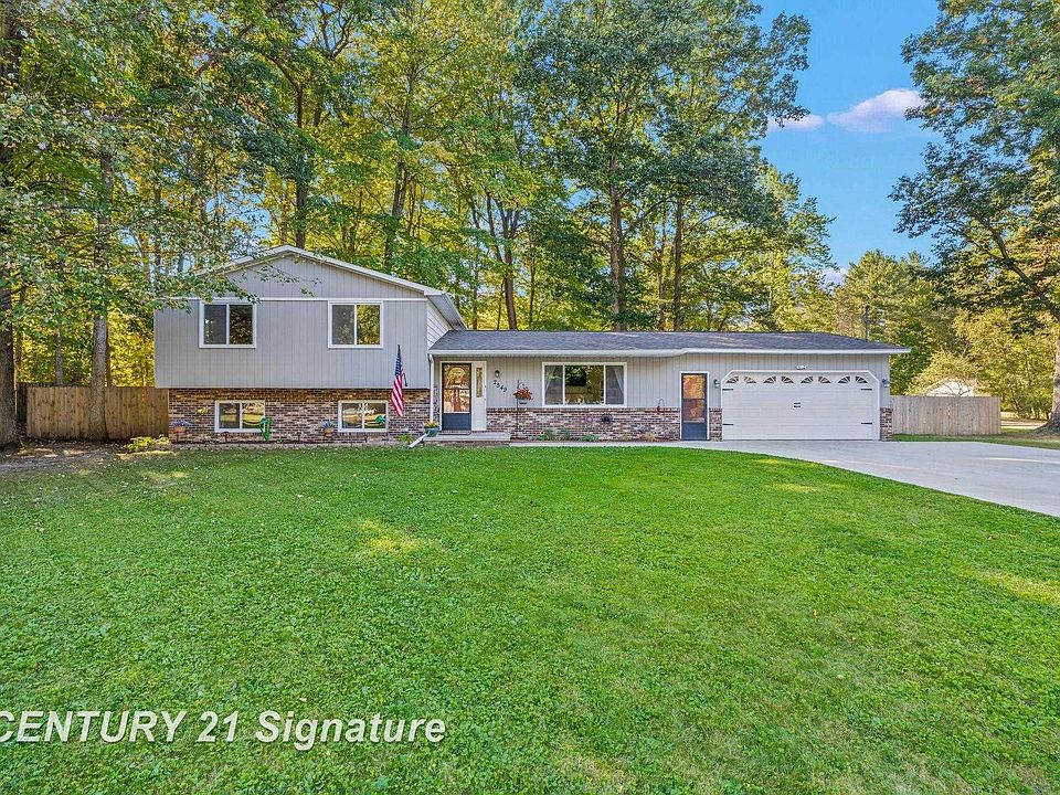 LIFE IS GREAT ON EIGHT MILE! Welcome home to this beautiful three bedroom home on almost a half acre resting quietly at the end of a dead end road. Built in 1977, this gorgeous tri-level home offers 1728 square feet of freshly painted finished living space. The living room, as you enter, features a new electric fireplace and large new windows that allow an abundance of natural light to flow throughout the home! The beautifully crafted kitchen with stunning white cabinets, walk-in pantry, and brand new stainless steel appliances is open to the dining room that features a sliding glass door to the large back deck! The upper level features three spacious bedrooms and the full bathroom. The lower level is the family room featuring a top of the line home theatre set up, bar for entertaining, and wood burning fireplace! Enjoy nights around the outdoor fire pit or grilling on the deck in the large fully fenced in yard! A newly poured extra wide driveway takes you to the attached 2 car insulated garage with additional freezer. Located within walking distance to downtown, near the rail trail, and 1/4 mile from the wooded trails of Veterans Memorial Park , this fabulous home truly has it all! Call TODAY for your own private showing of 2549 N Eight Mile!