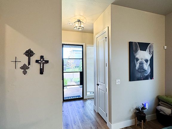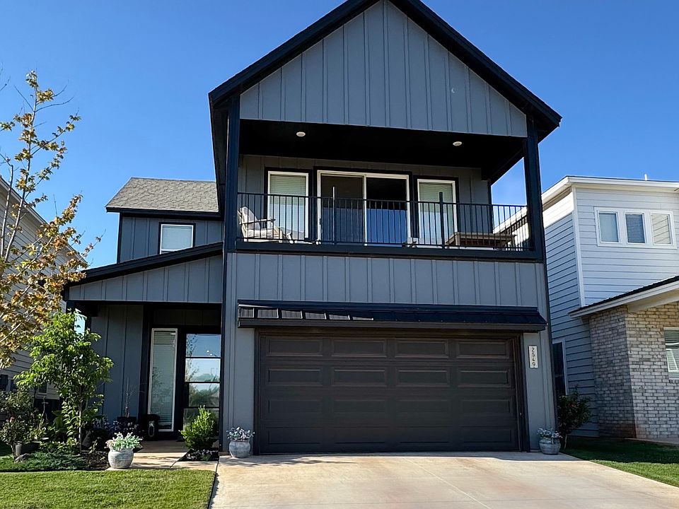 This Modern Farmhouse is just a short drive to many shopping and dining options. Step from the Welcome mat through a top of the line steel front door into an interior embrace that includes rigid core flooring throughout, an open layout, stylish lighting, and an elegant linear fireplace. The kitchen is loaded with custom Belmont cabinetry, designer hardware, a farmhouse sink, quartz countertops and stainless steel appliances. The calm main-floor primary bedroom includes private bath with separate tub and shower. The other two bedrooms are situated on the second level where you'll find a second living area and balcony to enjoy your morning coffee! Attached two-car garage. It's going to feel great to call this place home.