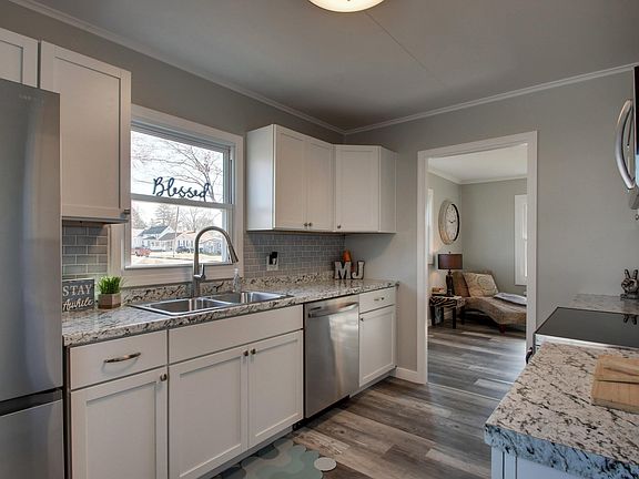 Charming renovated home on a corner lot! So much new! Renovation including new flooring, paint, fixtures, doors, updated electrical, new a/c unit, water heater & house roof and all windows (except 2). The kitchen is absolutely stunning! Appliances do convey! Check out those cabinets, counters & backsplash! Unfinished basement giving you plenty of storage availability! Two car attached garage is perfect for these winters!