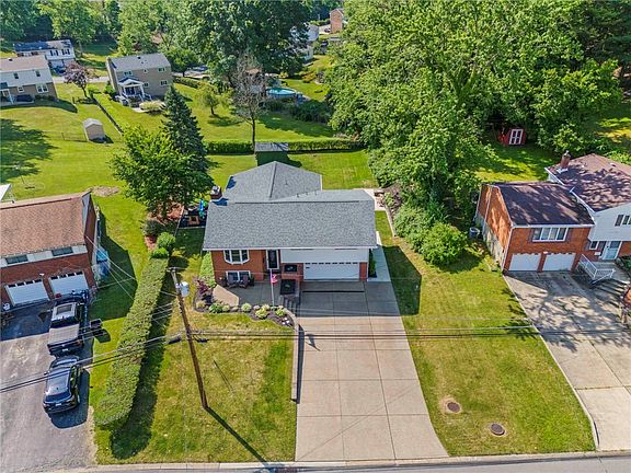 Lovely move-in ready 3 bedroom split level w/ beautifully updated kitchen(2021) featuring soft close white cabinetry, granite countertops, durable wood look luxury vinyl flooring, bar area open to dining area*Sliding doors off dining to beautiful, expansive covered porch w/ steps down to new patio(2021) & exceptional yard*Main floor features refinished hardwood flooring, living room w/ large bay window open to the dining, primary bedroom w/ private full bath, 2 additional bedrooms & updated hall bath*Enjoy a finished game room in lower level w/ wet bar & full bath & access to the yard, huge dedicated laundry room w/ laundry tub & storage, mud room space off spacious 2 car heated garage* New roof (2018)*New front door & storm door(2021)*Front of home features a lovely cement patio & expansive aggregate driveway w/ cement walkway to the back*Additional back patio w/ new retaining wall could be a perfect area for a firepit or other uses*Shed & Arlo doorbell camera included*