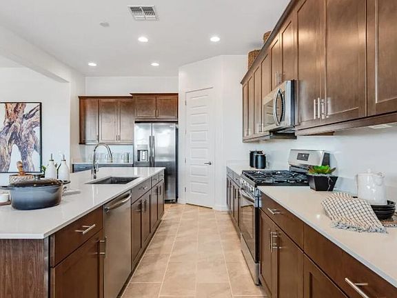 Seller is offering a credit toward a rate buydown and closing costs with our preferred lender—ask us how you can save thousands over the life of your loan! Windstone Ranch is a master-planned community in Surprise, AZ offering access to entertainment, shopping, dining, and beautiful views of nearby regional parks. Residents here enjoy a range of onsite amenities, including a pool, playground, and basketball court—perfect for both relaxation and recreation. This home comes fully equipped with all brand-new stainless steel kitchen appliances and features 7X22 tile flooring, stunning quartz countertops, and modern maple linen cabinetry, blending comfort, style, and everyday functionality. Photos are of a model home. A copy of the public report is available on the ADREs website.
