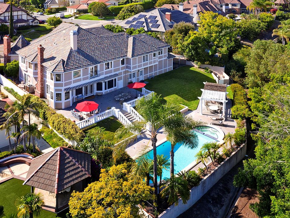 Fully upgraded with latest technologies: 2x high-speed Tesla EV charger, whole-house CAT6 networking, 13-speaker Dolby Atmos home cinema room, 9-camera/4K security surveillance system, and 6-zone smart HVAC. Set on nearly half an acre in prestigious Nellie Gail Ranch, this immaculate custom estate blends elegant style and luxurious amenities to redefine the meaning of an entertainers dream home. The Tudor-inspired masterpiece is tucked behind a double-gated circular driveway to a spacious motorcourt, 4-car garage, executive entry, all backed by direct access to 26 miles of horse trails. Inside, a soaring foyer opens to formal living, formal dining and an office with rich woodwork and a wet bar. The open-concept family room and chefs kitchen showcase high-end stainless appliances, built-in bar, breakfast nook and expansive windows. French doors reveal a resort-style oasis, where a 50-ft entertainers patio leads to a refinished lower level complete with pool, spa and gazebo/bar/BBQ area. Entertain guests inside and out, or cozy up by the fireplace in the Dolby surround-sound-equipped living area. The regal master suite boasts a Juliette balcony, wet bar, wine fridge, sitting area, and a luxe master bath with sauna, jacuzzi tub, and his-and-her spaces/walk-in closets. Six total bedrooms include a generous guest suite with private entry, full bath and living space for multi-generational comfort. Beautiful new wood flooring and luxe carpet throughout. This home has it all!