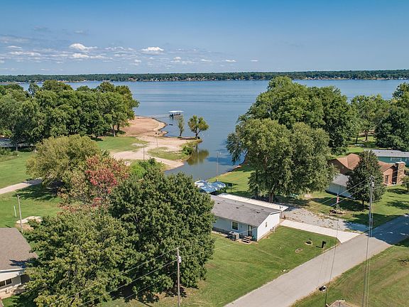 PRICE REDUCTION! Cozy on up to the end of this cove in Holiday Shores. The lake front is 203 feet of gentle slope. This split Floor plan has an open Kitchen with island. This cozy home sits on approximately 3/4 of an acre with a beautiful park like setting. Public storm shelter and playground are close by. Large 3 car garage for all your toys. Great place to entertain friends and family. Public boat ramp. New hot water tank & Heater/Air Conditional purchased in 2019.