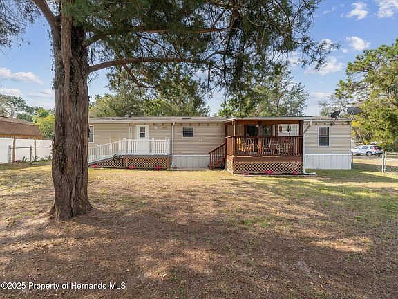 Beautifully Maintained & Occupied Seasonally, this 3 Bedroom, 2 Bath Fleetcraft Home is Nestled on a Corner Lot in Cooper Terrace - Located just Minutes to the Downtown Brooksville, Shopping, Medical, Golf Courses, Croom Wildlife Management w/access to Hiking/Biking Trials of the Withlacoochee Forest, I-75 for Easy Commuting & more! The Home Features an Open Floor Plan, Kitchen w/Island & Breakfast Bar, Pantry & Lots of Cabinet Space. Inside Laundry Room w/Back Door. Large Primary En Suite w/Jetted Garden Tub, Separate Shower & Double Vanity Updated in 2019. Additional Updates Include: Plywood Flooring in Kitchen, Baths & Living room 2020. Carpeting in 2023. Roof, Gutters & TIE DOWNS for CAT 4 HURRICANE in 2019. Well & 900 gallon Septic in 2008. Low-maintenance Trex Decking & Railing on the Rear Porch, Front Deck & Back Deck w/Ramp in 2021 - Relax & Enjoy the Beautiful Landscaping & Mature Trees in the Fully fenced back yard w/Shed & Lots of Room for Your Outdoor Toys. Make Your Appointment Today!