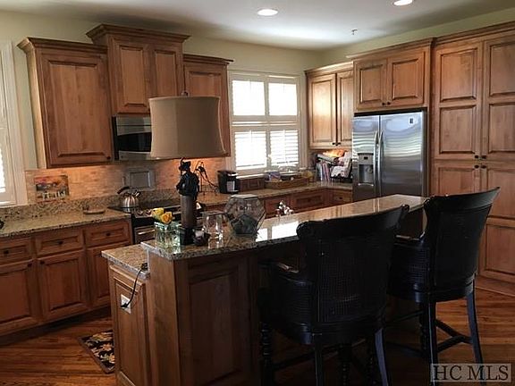 Located inside the gates of Highlands Cove at Old Edwards Club, this unique Views Condo is the only three bedrooms, four bathrooms, and bonus room condo in the community. This straight walk in unit captivates you the moment you walk in. Your eyes are drawn to the mountain views, so much so that you may forget take in the elegance of the home. The entry greets guests with hardwood floors through out the living, dining and kitchen area. Complimenting the floors are cast iron foyer and dining lights. The chief's kitchen is has custom 36 inch cabinets, with pull outs for ease of use, granite counter tops, stainless GE Profile appliances, oversized double stainless sink, Uline icemaker and wine captain. The chef's will never feel too far away from guests, as the open concept of this home has site lines into the living and dining rooms, deck, screen porch and the mountain view beyond. For cooler nights, the home offers two gas log fireplaces; one in the living room and one for enjoying the fresh air of the mountains on the screened in porch. The master suite is oversized and well appointed with everything an owner needs. Fitting easily, the king-size bed takes in the long-range mountain views. The master bedroom has a walk in closet, large master bath with double vanities, large shower and jetted tub. Guests will not feel left out, as there are two guest rooms in this home; one on the main level and a second master on the lower level. The lower level has a second sitting/TV area and lower outside deck, offering your guests some privacy. The bonus room, with connecting fourth bathroom, makes a perfect office, flex space or bunk room (which is how the current owners are using it) All bathrooms have custom 36inch high vanities with Kohler faucets, tiled showers with adjustable Grohe showerheads. Behind the hallway pocket door, the laundry room has overhead cabinets for storage and counter top for folding. No detail has been overlooked in this one owner home.