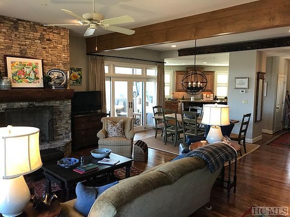 Located within the gates of the Old Edwards Club at Highlands Cove, this very special property offers 3 bedroom, 4 bath with attached bonus room. This straight walk in unit immediately catches your attention when you walk in as the long range, panoramic views of the mountains will take your breath away. Hardwoods through out the living room, dining room and kitchen. The kitchen has custom 36 inch cabinets, granite counter tops stainless steel GE Profile appliances, double stainless steel sink, Ice Maker and wine captain. Two fireplaces located in the living room and one on the screened in porch. Oversized master bedroom with long range views of the mountains. Two additional guest bedrooms with one located on the main level and one located on the lower level. The lower level also offers a second sitting and TV room with access to its own outdoor deck. The bonus room with connecting 4th bathroom makes for perfect office space or bunk room. All bathrooms have 36 inch high vanities with Kohler faucets, tiled showers and Grohe showerheads. This is the most unique condo located in Old Edwards Club. Mountain Dreams Begin Here.