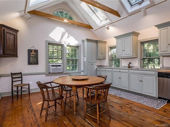 This 80+ acre bucolic property on Wyassup Road in North Stonington consists of 4 seperate lots: an authentic 1780 house and barn at 255 Wyassup on 38.81 acres, an abutting parcel of 7.72 acres on 261 Wyassup with a 1636 Sq Ft house and attached 2 car garage; plus two contiguous wooded parcels across the street totaling 34 +/- acres. Step back in time when entering the main house, "Pentways", with wide board floors and ceiling beams throughout. The first floor flows around the center chimney and is perfect for entertaining while the newer kitchen wing is spacious and bright with 3 exposures and skylights. The large living room is balanced with an oversized fireplace on one end and an inviting sitting area flanked with a bay window overlooking the gardens at the opposite end. The dining room and library each with a hearth and the full bath round out the first floor. Upstairs are 6 bedrooms plus a full bath with tub. Complimenting the original house is a small barn/garage, a beautifully landscaped inground pool with changing room and a secluded pond. The upstairs of the home is heated electrically and downstairs is heated by propane. The 1989 house next door at 261 Wyassup "La Boite", is a charming home with open living living/dining/kitchen and deck upstairs plus a large primary bedroom, a guest bedroom, and full bath. Downstairs is a large living room with French doors to the stone terrace, laundry and half bath. Floor plans are attached.