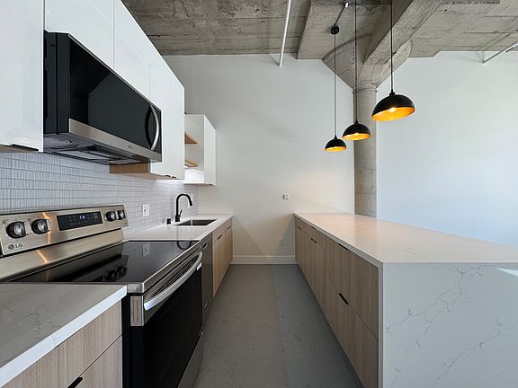 Modern Live/Work Loft Living in the vibrant Jack London Square. This bright, spacious loft features soaring concrete ceiling, and floor-to-ceiling windows. The open-concept layout is ideal for entertaining or creative work. It has a newly updated kitchen boasting a peninsula island with waterfall countertop, and new stainless steel stove and microwave. The living area opens to a large private balcony perfect for morning coffee or evening wine. The generous bathroom offers a dual sink vanity and tiled shower. Enjoy in-unit laundry and one assigned space in a secured garage. This flexible space is ideal for a home office or studio. Residents also enjoy a rooftop deck with skyline views and BBQ area. This loft is conveniently located among many restaurants, bars, breweries and shops, with a Walk Score of 94 and Bike Score of 85. It is also near BART, Amtrak, SF Ferry, & easy freeway access. Rent includes electric, gas, water, garbage & recycling. Owner pays for water, electricity, gas, garbage and recycling.