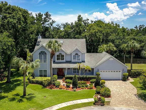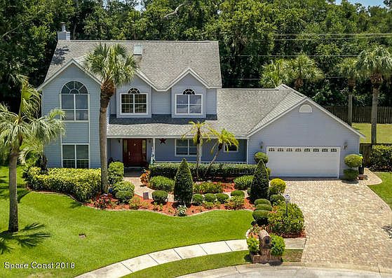 Welcome home to this charming, 2 story pool home, located in the ''Woods at Crooked Mile'' community in South Merritt Island. This custom designed family residence sits in a beautiful cul de sac, and features four bedrooms, 2 full bathrooms and 2 half bathrooms. Beautiful 3/4 inch, tongue and groove hardwood oak floors adorn the front hall and dining room. A gas fireplace, and custom rounded corners add a warm, inviting feel. Custom pavers complete the driveway, front walkway entrance andporch, as well as the backyard patio. The first floor offers an open family room and living room area separated by sliding French pocket doors, private dining room, and kitchen with new stainless steel appliances. . The second floor hosts all four bedrooms, as well as a bonus flex room.Relax on the screened pool deck and enjoy swimming in the free form pool with salt water chlorinating system. Mature oak trees and professional landscaping complement the large, pet friendly fenced lot.