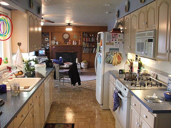 Large daylight basement mid-century home in great neighborhood with great schools. Walk to grocery, restaurants, coffee shops. Potential dual living. New roof, stove, dishwasher, microwave in last 2 years. New flooring in basement 2022. Gas fireplaces in basement , wood burning in living and family room/kitchen. Daylight basement with large patio, private backyard with automatic sprinkler system throughout yard. Refinished hardwood floors throughout main level. Gorgeous large master suite with walk-in closet and French doors to the back yard. Radiant floor heat in master bed and bath. Lots of storage. Laundry room on main level. Main floor room sizes are: Kitchen is 13 X 8 Family room is 20 X 12 Dining Room 12 X 12 Living Room 24 X 14 Master Bedroom 22 X 12 with private, Master bath 13 X 7, Bedroom 2 is 11 X 15, Bedroom 3 is 12 X 13, Bedroom 4/office is 10 X 11, Laundry room/pantry is 8 X 8, Bath 2 is 11 X 6 Lower level: (daylight basement), Family room is 22 X 24 with gas fireplace, Office/ bedroom 5 is 11 X 14 with 11 X 4 walk in closet, Work/flex area is 8 X 17 and 9 X 18 (L shaped), Storage/craft Room is 23 X 26—irregular shaped, Bath 3 is 8 X 7 So much to list: Master bedroom added in 2005. Handicap accessible shower etc. 3 zone Gas heat—water baseboard system, Master has radiant floor heat. 2 Gas water heaters (master has separate one) and gas stove. Wood burning fireplace in living room and upstairs family room/kitchen. Gas fireplace in downstairs family room. Concrete patio outside lower level back door—wired and ready for a hot tub. Huge storage/craft room downstairs—with ‘wine closet’ and wall safe . Additional space down for shop area. Great storage throughout. New vinyl energy efficient windows on main level.