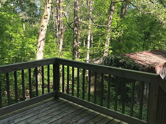 Cozy cottage style house on a hill with a fenced in back yard. Wooded lot with lots of privacy.