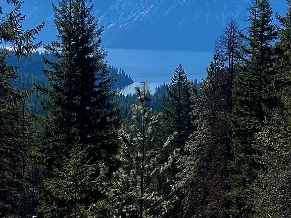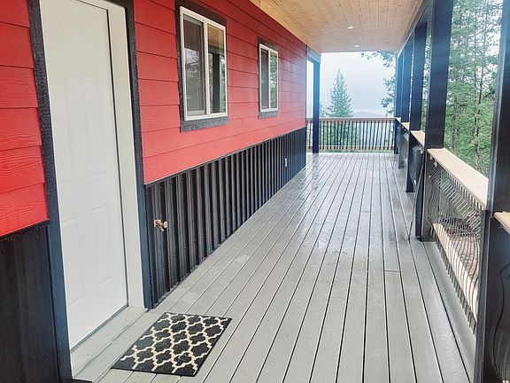 Remarkable view of Garfield Bay on beautiful lake Pend Oreille from this brand new home. Never been lived in. Over 1 acre of privacy. Build a shop and /or garage on this property just the way you like it. Large covered porch, lots of storage, wet bar, Tongue and groove ceiling on the covered porch, heat pump, washer and dryer hook ups on both first level of home and hook ups in daylight basement level of home for great convenience. Builder piped in gas line to living room wall if someone would like to add a gas fireplace. Rap around covered porch to enjoy during all seasons.