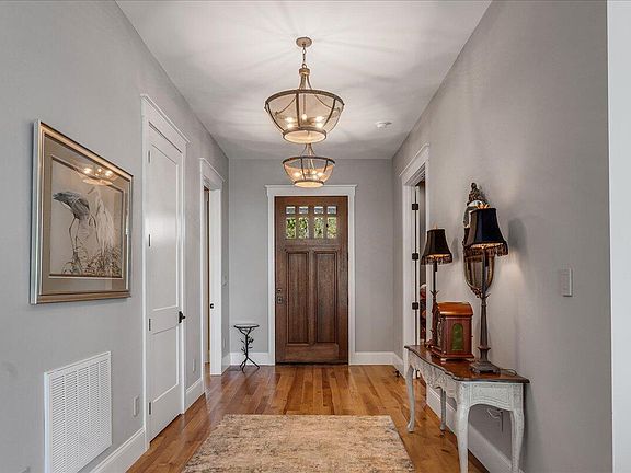 The primary owner's suite with gorgeous views, features a bath with zero-entry rain shower, heated floors--even a heated bench in the shower! This amazing property includes an integrated complete guest suite, plus a separate entrance to a self-contained In-law suite with kitchen, & those endless views of the mountains &river. The solid Hickory hardwood floors throughout, tell you this home was designed & built by a true craftsman.