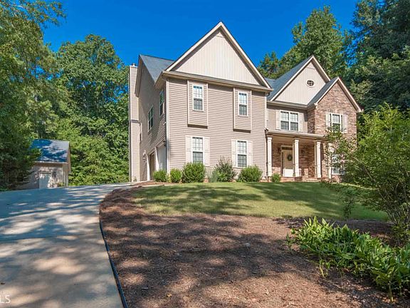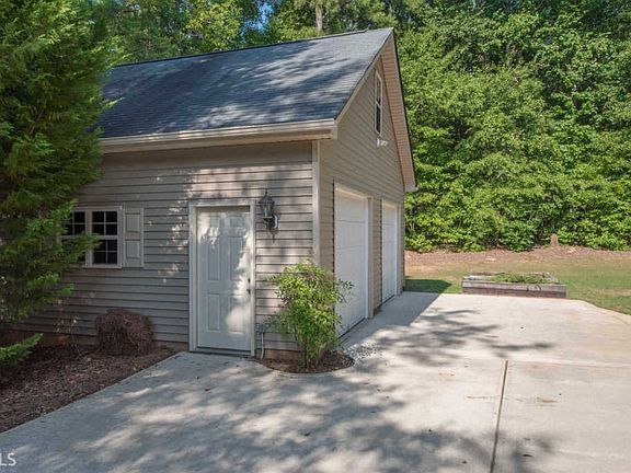 Tremendous opportunity to own this custom built home located in Sharpsburg on a private 1.7 acre wooded lot. You will enjoy the large kitchen with granite countertops and backsplash, island with room for seating, stainless steel appliances and a huge pantry. Kitchen opens up to the family room that has a stacked stone gas fireplace and built in bookcases. Main level also has a living room, dining room with access to a covered patio, half bathroom and laundry room with ceramic tile. You will appreciate the custom made built in bookcases near the top of the stairs to display all your treasures. The master bedroom is spacious and has a beautiful tray ceiling. Master bathroom has plenty of space for two people, ceramic tile and the closet of your dreams! There are three additional bedrooms with large closets and a full bathroom that has ceramic tile. An additional room upstairs could be used as a bonus room, playroom or home office. There is a full unfinished walk out basement for future expansion or storage. Two car attached garage PLUS detached two car garage that is 26â x 23.5. So much storage space! Conveniently located between Newnan & Peachtree City and only minutes to Samâs Club/Costco.