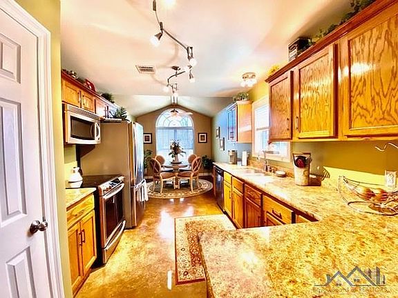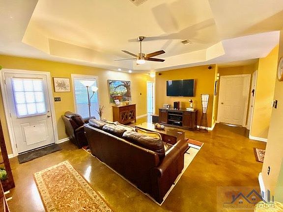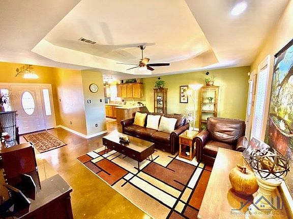 Beautiful home located in Bayou Blue with tons of amenities! Mature landscaping with automatic irrigation system. HVAC 2 years old! Attached double garage plus side carport with extra parking slab! Enter home through spacious foyer with high ceiling. Living room features stained concrete floors, recessed lighting, and tray ceilings. Flat screen TV and wall mounted surround sound speakers in living room to remain! Stunning granite counters with newer stainless steel appliances in kitchen overlooks formal dining area. All stainless kitchen appliances to remain including massive refrigerator! Washer/dryer also remains! Cozy master bedroom includes walk-in closet and tray ceiling. Large double vanity in master bathroom with granite counters. Master bathroom also includes large custom tile shower. Guest bathroom includes fiberglass tub/shower with sliding glass door. Back yard is fenced and includes raised garden overlooking open field. Removable solar screens. Front storm door has adjustable solar screen.