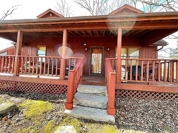 1.19 acres. 1.5 story wood sided home. All hardwood flooring, walls, and ceiling. Stone fireplace. Asphalt driveway with gated entrance. Mature trees. Large covered front porch. All furniture and fixtures included. Also washer and dryer. 2 full bathrooms. Master bedroom on main level with full bath. Large loft bedroom upstairs with full bath. 14 x 26 additional finished room that could be used as a 3rd bedroom, workshop, or storage. Approx. 8 x 32 sunroom / rear porch. City water, RECC electric, propane heat, central AC.