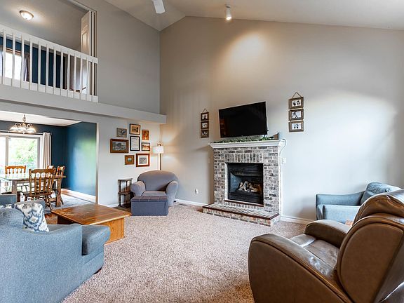 3 bedroom, 2.5 bath one and a half story home with primary suite on the main level. The great room features lofted ceilings up to loft on the 2nd floor perfect for a second living area or office. Gas log brick fireplace brings a coziness to the room. Dining room is open to living room and features a sliding patio door with views onto patio and private fenced backyard (metal fence). Kitchen features all appliances remaining with plenty of counter space and cabinets for all your storage needs plus a pantry. Half bath/laundry room on main floor for convenience. 2 bedrooms upstairs share a full bath and one of the bedrooms features a large walk-in closet. Ring doorbell & nest thermostat remain. Great location close to shopping, grocery stores, restaurants, YMCA and a close drive to Pokagon state park and Lake James.