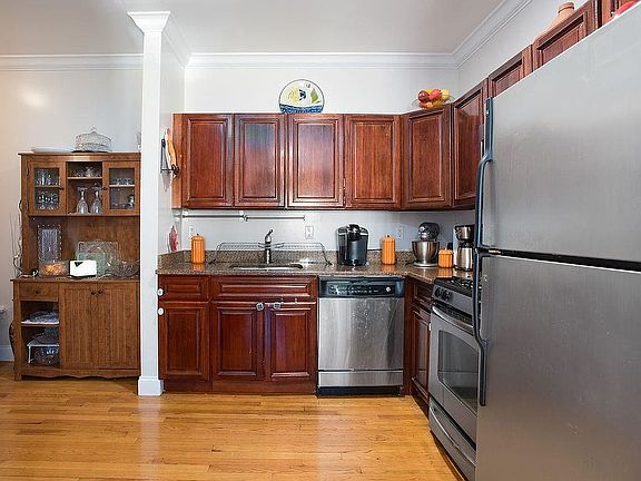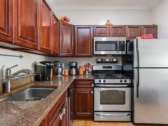 Beautiful and airy 2 bedroom 2 bath corner unit condo is now available in an elevator building in desirable downtown part of Bayonne right on Broadway. This apartment offers hardwood floors, granite countertops, stainless steel appliances, central A/C and washer/dryer in unit. This newer building is conveniently located to all major transportation with a short walk to the Light Rail or to hop on Rt 440 or NJ Turnpike. It offers a comfortable and secure garage parking and convenience to shopping and restaurants on Broadway. Come see it for yourself.